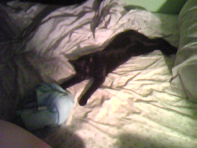 Here's a picture from Nostalgia's first night in her new home. She took right over and stole my heart AND my bed!